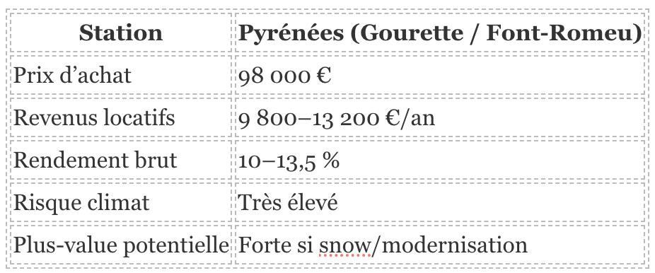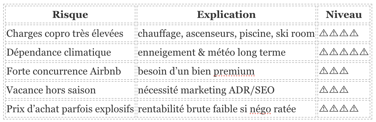 Mais attention : si l’investissement LMNP en station peut rapporter 8 à 12 % brut, il peut aussi devenir peu rentable ou même déficitaire si l’emplacement est mal choisi, si les charges de copropriété sont trop lourdes ou si l’enneigement diminue.
