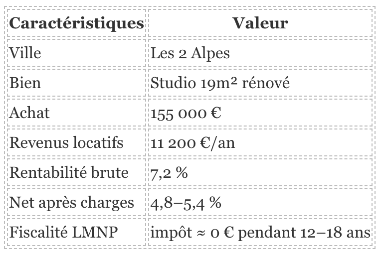 Cet article aborde le fonctionnement du LMNP et amortissement fiscal, les rentabilités réelles observées en stations, les risques climatiques, vacance, charges & solutions ainsi que les stratégies pour doubler le rendement et la méthodologie pour sécuriser un achat rentable.